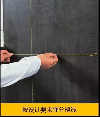 美紋紙粘貼時,與第二次分格縫彈線對齊即可。