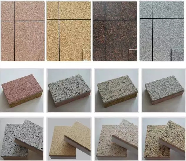 飾面層材料可為氟碳漆、仿石漆、質感涂料、裝飾砂漿、面磚、薄石材等,根據需求可做成各種不同裝飾效果。